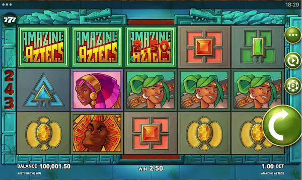 With a 5 reel, 3 row layout, this title brings familiarity and consistency when compared to other slot games. During the gameplay, gamers have endless opportunities to trigger extra bonuses and additional multipliers, including extra prizes such as these through re-spins, in this online Aztec title.