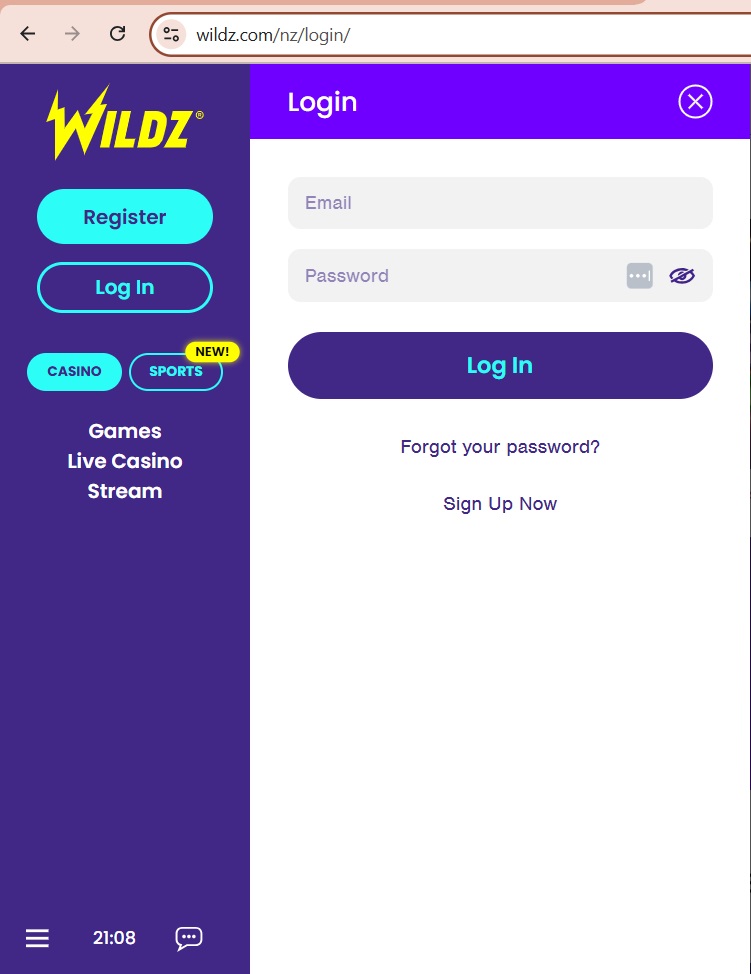 To log in to Wildz Casino NZ, visit the official website, click the ‘Login’ button, and enter your registered email and password. After logging in, you’ll gain access to the casino lobby and available bonuses.