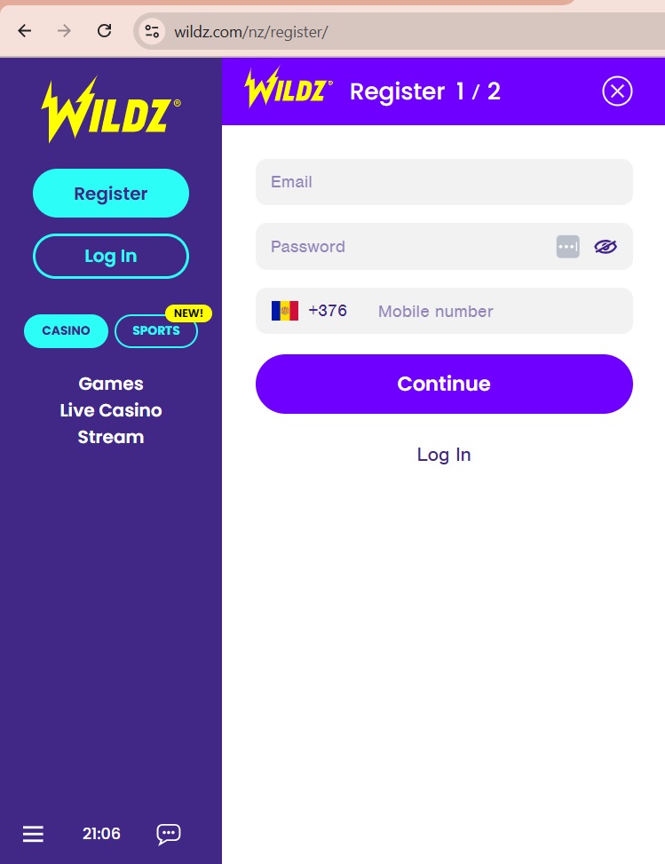 Go to wildz.com/nz on your desktop or mobile device. Make sure you are physically located in New Zealand with a valid NZ phone number.