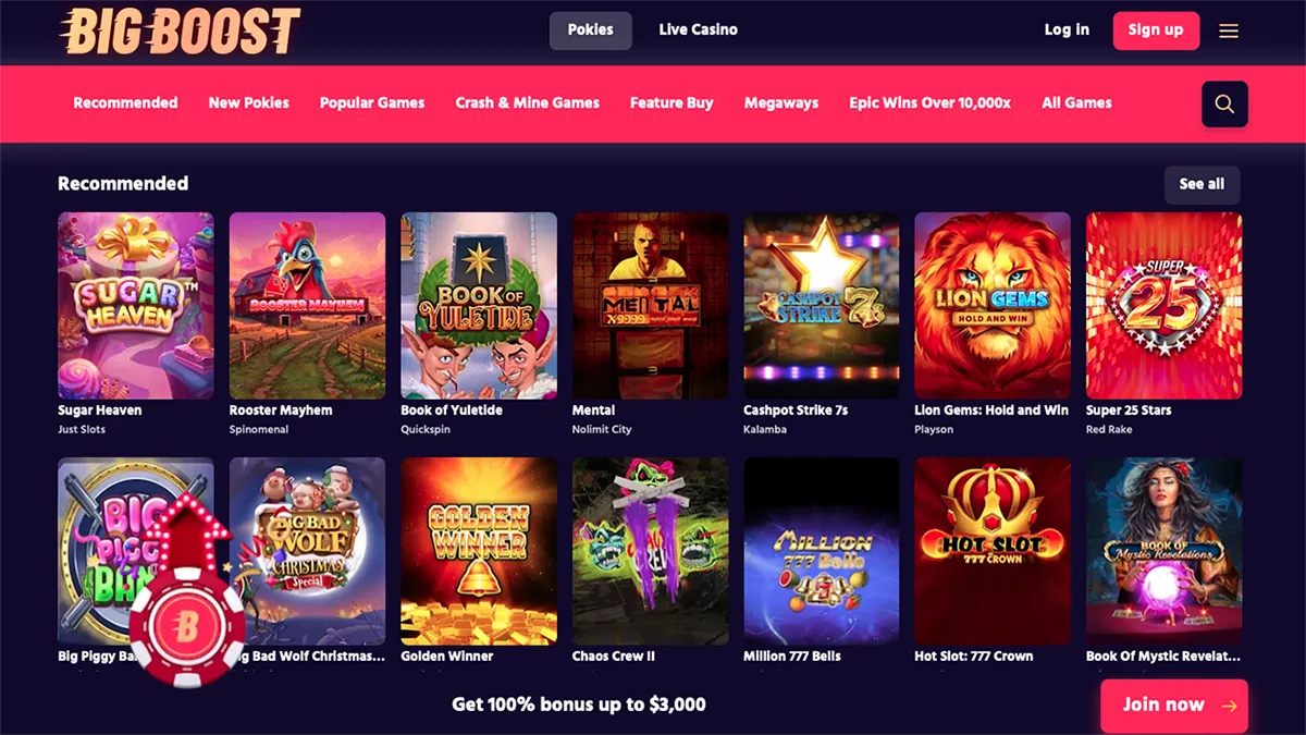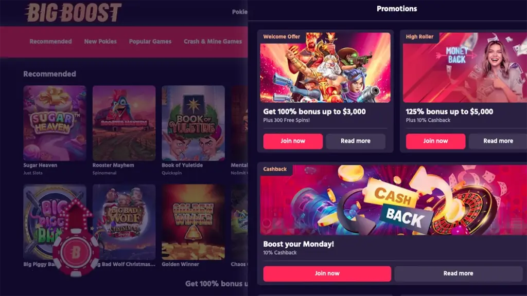 Big Boost offers thousands of online pokies by top-tiered studios. Some of the finest titles are Book of Dead, Gonzo’s Quest, and Immortal Romance.