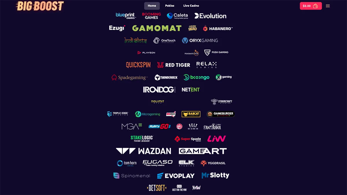 As I already mentioned, Kiwis will find 5,000+ NZ pokies at Big Boost Casino and a huge number of developing studios. Some top-tiered providers are mentioned at the beginning of this guide, including NetEnt, Betsoft, Games Global, and Play’N GO. Evolution Gaming and Pragmatic play are also part of the mix.