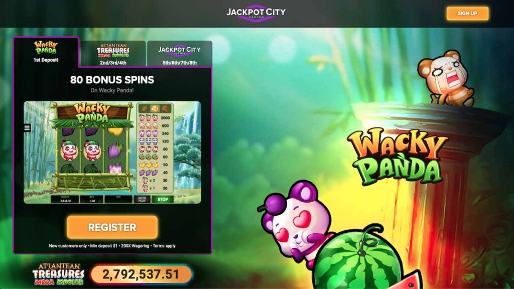 Another unique bonus from Jackpot City is available exclusively for Kiwis accessing the casino via the link below. For a deposit of only NZ$1, players receive 80 spins to use on Wacky Panda. 2nd/3rd and 4th deposits of NZ$5 allocate 215 spins to use on Atlantean Mega Moolah. Kiwis also gain a 100% match bonus for four separate deposits, up to NZ$400 each, totalling to NZ$1600 in bonus cash. The spins and bonus money are subject to 200x wagering requirements, so click the link and get playing!