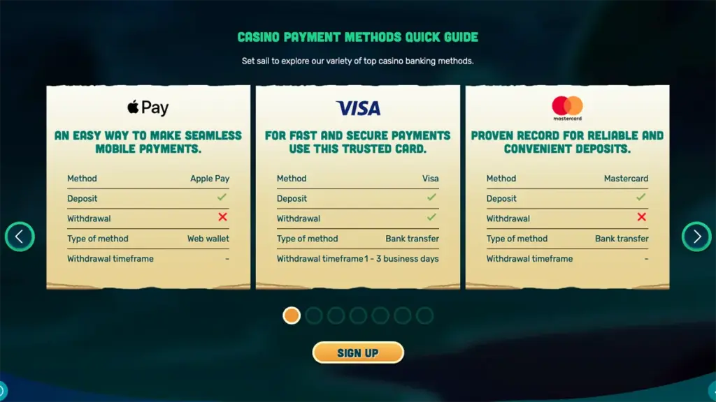 Plenty of deposit methods are available after registration. The KYC verification becomes mandatory at a later stage, so you can immediately transfer funds, claim a bonus, and start playing. There is no information on the website for any maximum limits, but sums will be capped by the methods’ own limitations.