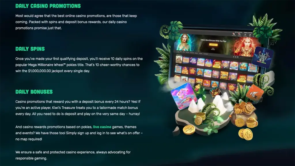 - What responsible gambling tools are available for New Zealand players at Kiwi’s Treasure?