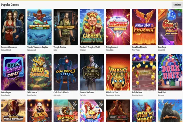 The online pokies on the platform cover a wide range of themes, mechanics, and bonus features. Certainly, most local players are thrilled by Megaways, Buy Bonus, and Pay Anywhere slots, but the variety covers pretty much all the niches.