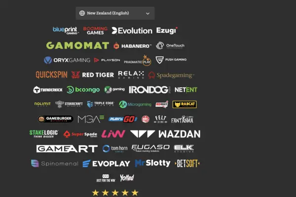 Like in other top NZ online casinos, here, players can find pokies crafted by boutique studios united under partnership programs. A good example is the presence of pretty much all Games Global exclusive partners, like Triple Edge and Gameburger Studios. Then again, we must not forget iGaming pioneers, like Evolution Gaming, Ezugi, and StakeLogic, powering the Live Casino lobby.