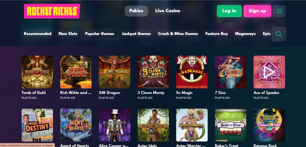 Rocket Riches focuses heavily on pokies, which aligns perfectly with New Zealand player preferences. The game library includes: