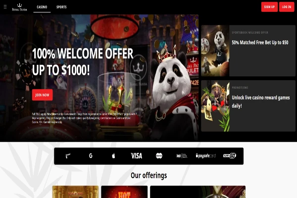 Royal Panda proudly offers players exceptional rewards and unmatched gaming excitement. That’s why we’ve upgraded our Welcome Offer to include an unbeatable $1,000 and 1,650 Free Spins, providing the ultimate casino experience and endless fun!