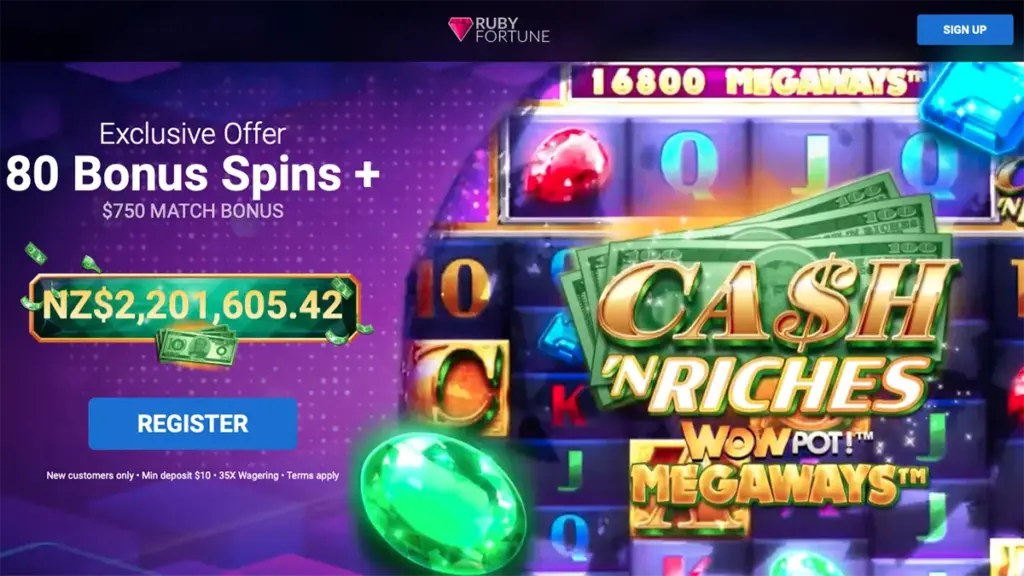 By using our exclusive link, Players in New Zealand are able to claim an exciting and new offer. After your first deposit of minimum $10, you will immediately get 80 free spins on Cash N Riches WOWPOT! slot game + 100% Match up to $250. The second and third deposits also consist of 100% match bonuses for up to NZ$250 each, with the entire bonus subject to 35x wagering requirements.