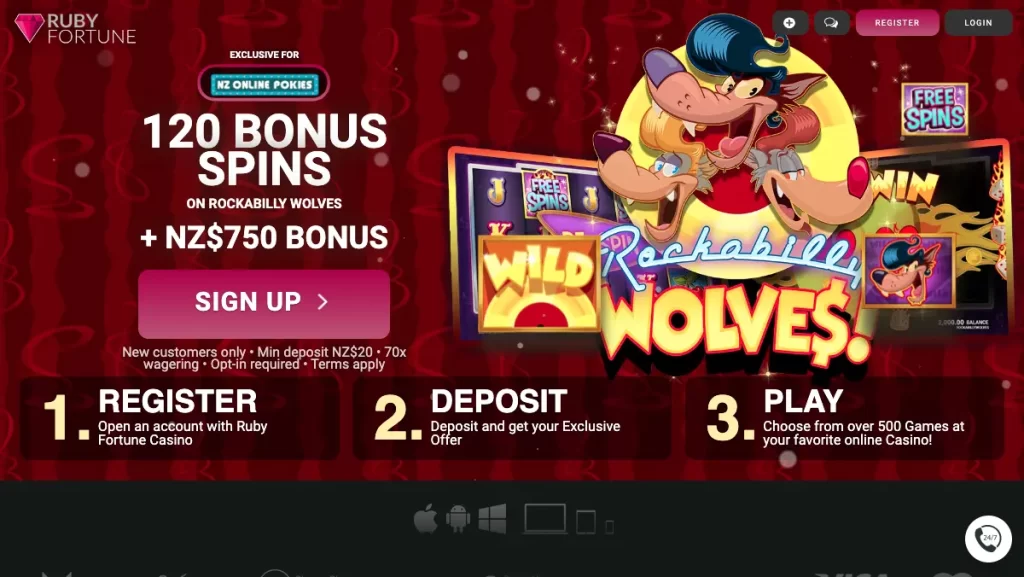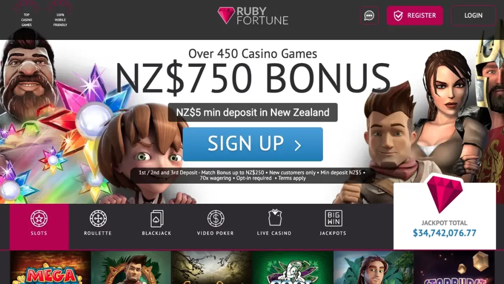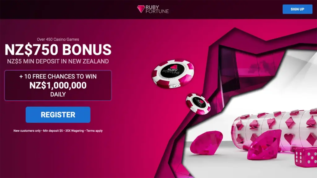 Ruby Fortune has a great offer awaiting for Kiwis using the link below, only available through New Zealand Online Pokies. With a great bonus of up to NZ$750, divided over three different deposits of 100% match bonuses up to NZ$250, players can access this to get a head start on their gaming journey. This bonus is required only a NZ$5 minimum deposit and subject to 35x wagering requirements prior to withdrawing any winnings.
