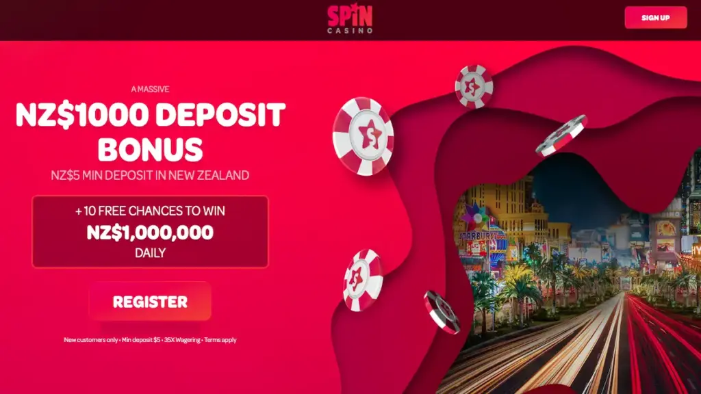 Spin Casino has a special offer awaiting for you by using our exclusive link below. With a great bonus of up to NZ$1,000, divided over three different deposits. The first deposit offer 100% up to NZ$400, and the second and third deposits, offer 100% up to NZ$300. This bonus is required only a NZ$5 minimum deposit (Instead of $10) and subject to 35x wagering requirements prior to withdrawing any winnings.