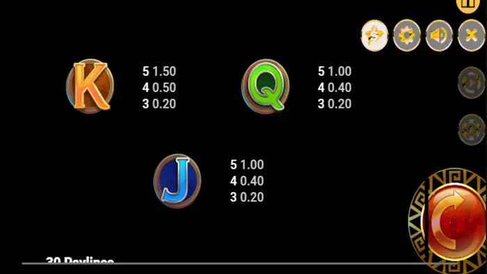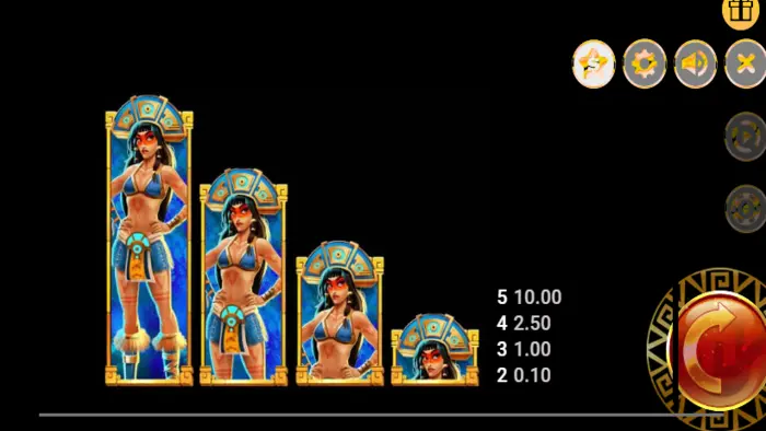 | Female Warrior | 2, 3, 4, or 5 pay 0.10x, 1x, 2.50x, or 10x the bet |