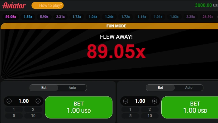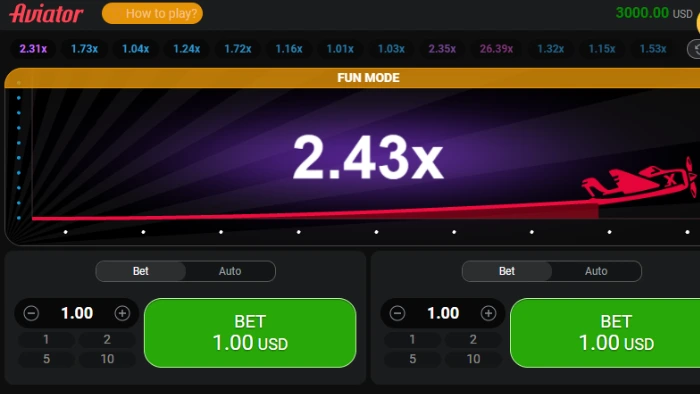 You must place one or two separate bets and close them before the Airplane flies away. The starting bet multiplier is 1x, but the round can end at any moment.