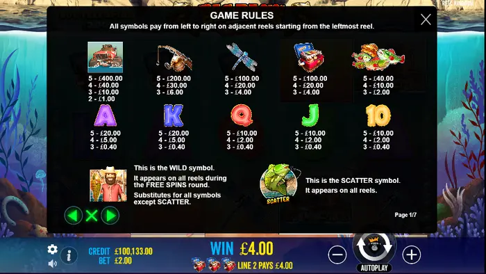 Kiwi pokie enthusiasts familiar with the Big Bass series won’t be surprised that the Wild Fisherman is available only during the bonus round. Scatters can trigger it, but let’s focus on the regular figures for now. Fish of different sizes act as Money symbols, but also pay from 1x to 20x if lined up.
