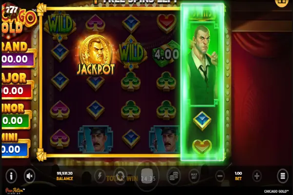 Chicago Gold makes a stunning first impression with dazzling lights and premium graphic quality, as well as with a wide grid consisting of 5 reels and 5 rows. There are 40 fixed paylines there, starting from the leftmost column and continuing to the right on adjacent positions. You can find the jackpot prizes displayed on the left and all the tools beneath the grid.