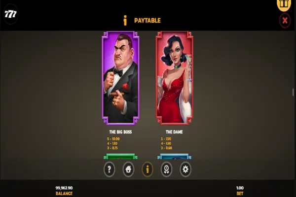 | Mafia Boss | 3, 4, or 5 pay 0.75x, 1.50x, or 10x the bet |