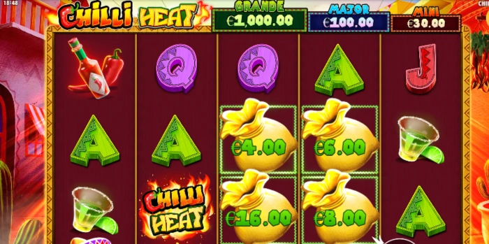 The Money symbols in view stick to their positions, and the rest transform into independent reels. Players get 3 respins to find more scatters, and every successful hit resets the counter back to 3. A full grid of 15 Money symbols awards the Grand prize. Here are all the available jackpots in the Chilli Heat pokie: