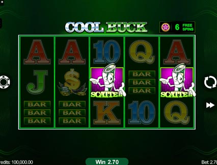 Another way to activate that free spins round is with the scatter symbols. The Cool Buck himself represents the scatter symbol. When you land a minimum of three scatters on the reel, the free spins feature will be activated. The number of extra spins you will get depends on the number of scatters that you land.