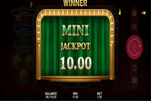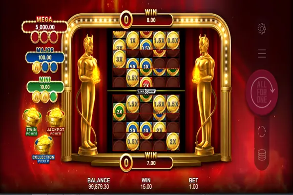 Red Coin scatters trigger Jackpot Power, and some Coins may land in red, blue, or green colors contributing one point to the Mega, Major, and Mini jackpots, respectively. Collect 3 for each prize to receive it and the respective counter will reset. You can win each of the pots multiple times in addition to all Coin cash values.