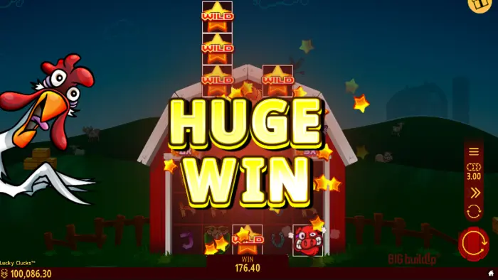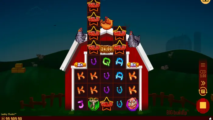 As you can see from the table above, the regular payouts are not particularly attractive, but in this game, they are in bulk. The generous Any Adjacent Pays and the bonus features turn the Lucky Clucks’ potential upside down. The lack of Bonus Buy may seem unfortunate at first, but in my opinion, it’s incompatible with the Big BuildUp feature.