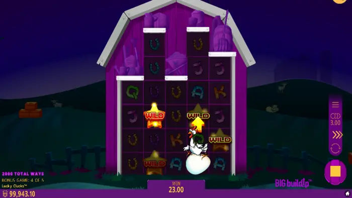 Whenever it’s triggered, it can award one or multiple rewards, including the Mother Hen Prize. Eggs reveal wild symbols and each one adds a row to the respective reel. Whenever all features are completed within the BIG BuildUp, a potential multiplier from the Gray Hens can increase the total payout.