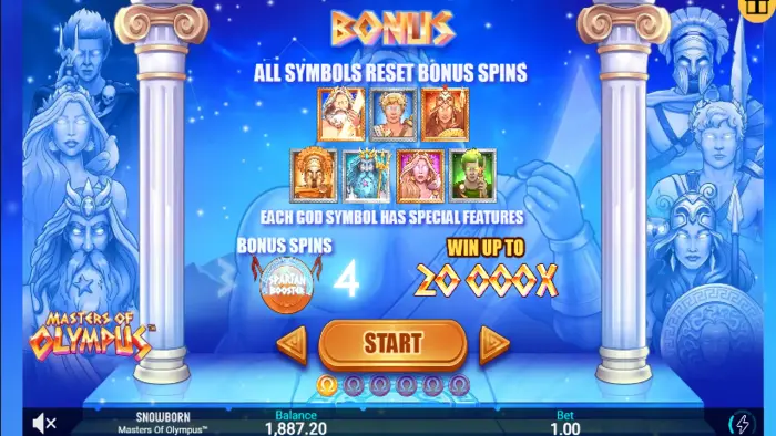 Masters of Olympus is packed with Olympus Bonus and Spartan Bonus, which both have various special features. Zeus Respins is also available during the base game.