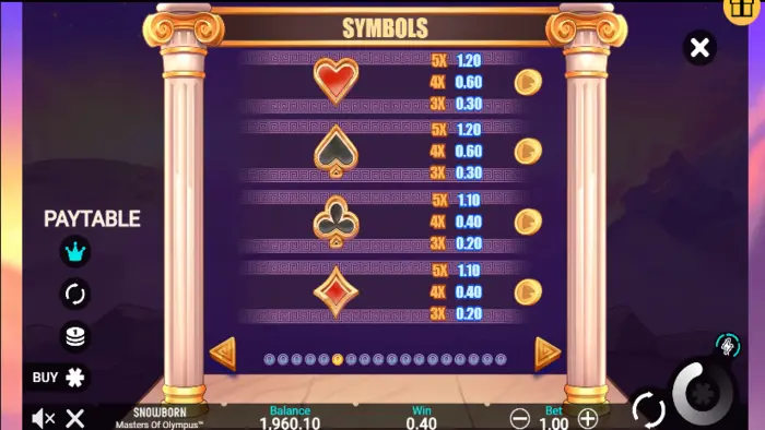 | Hearts Suit | 3, 4, or 5 pay 0.30x, 0.60x, or 1.20x the bet |