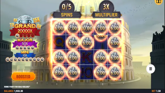 Foxium is one of Games Global’s most successful partners due to the innovative and challenging features that are often part of its pokies. Rome Fight for Gold Deluxe offers a base-game feature and a bonus minigame with a pretty substantial payout potential. And, instead of Bonus Buy, the provider has added a boost!