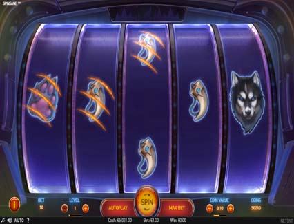 Despite the fact that the Spinsane uses five symbols, any of the claw, paw print and wolf icons can change into super symbols. These are regular symbols but have three slashes of fore across them. If you land a line of similar super symbols, any reels with standard symbols can spin again giving you another chance to land a combination of higher-paying super symbols.