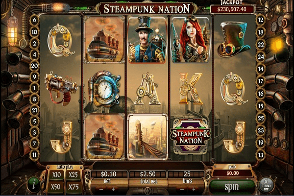 Step into an alternate reality where steam technology stands above the rest. The Steampunk Nation online game is a revolutionary pokie that’s not only beautiful but has a range of great features that’ll provide you with an immersive gameplay experience. Wild and scatter symbols are present, with a progressive jackpot in full effect. Furthermore, you can also take full advantage of the free spins special feature.