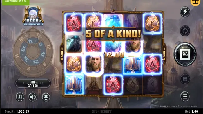 This event can start randomly during the base game and awards a single free spin with up to 5 Wild Reels. Visually, it’s quite spectacular, and from my point of view, Thyra is amazingly represented by the provider. The WildStorm feature can also be activated during the bonus minigame.