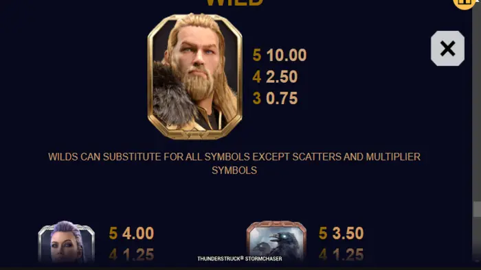 | Thor (Wild) | 3, 4, or 5 pay 0.75x, 2.50x, or 10x the bet |